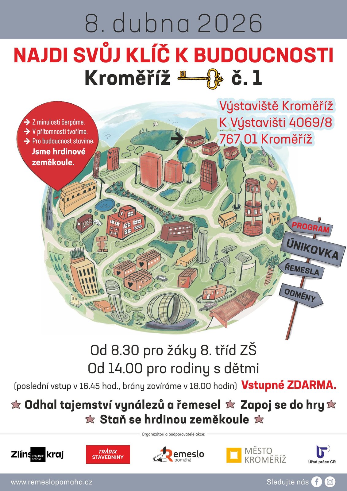 Prezentační akce Najdi svůj klíč k budoucnosti je určena především žákům 8. tříd základních škol a uskuteční se 8. dubna 2026 na Výstavišti Kroměříž.